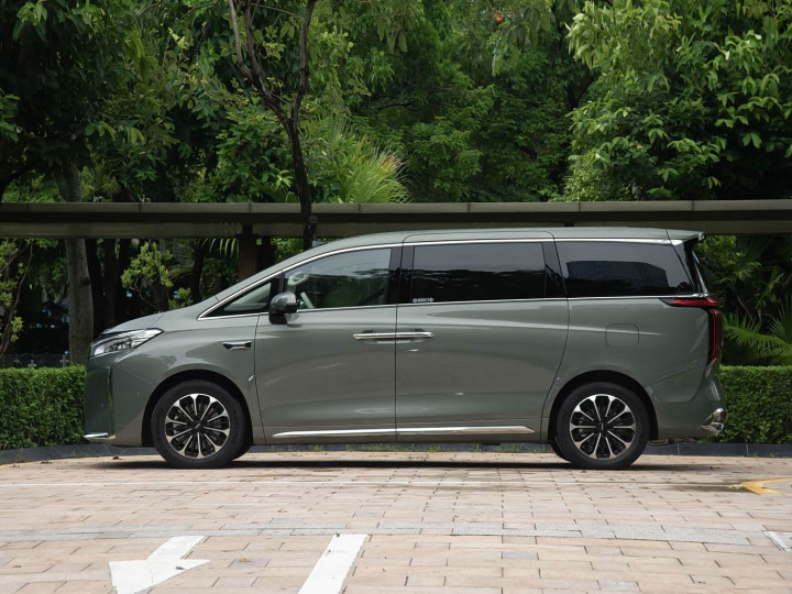 再来看车身侧面部分,新车5050mm车长与3085mm轴距,让高山7在5米级MPV中保持灵活操控(转弯半径仅5.7米)。悬浮式车顶与分段式腰线强化动感,多幅轮毂与侧裙镀铬饰条则增添精致度。下滑式的棱角线条结合车门底部宽厚镀铬饰条镶嵌,整体的层次感还是很不错的,而且值得注意的是,其1900mm车高优化了地库通过性,而1960mm超宽车身,为三排横向空间留足余量,实测可轻松容纳三名成人。